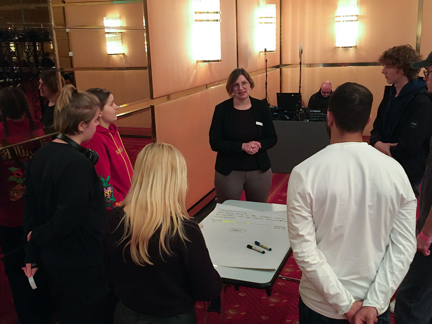 Auf die Einstiegsfragen folgte die Arbeit im World-Café-Prinzip: Zunächst sammelte jede Gruppe Lösungsideen zu einem der Themen, anschließend rotierten die Gruppen und entwickelten die Ansätze der anderen Gruppen weiter. Wir setzten das World-Café-Prinzip erstmals ein; insbesondere die Vielzahl und Qualität der entstandenen Ideen in kurzer Zeit beeindruckten uns.